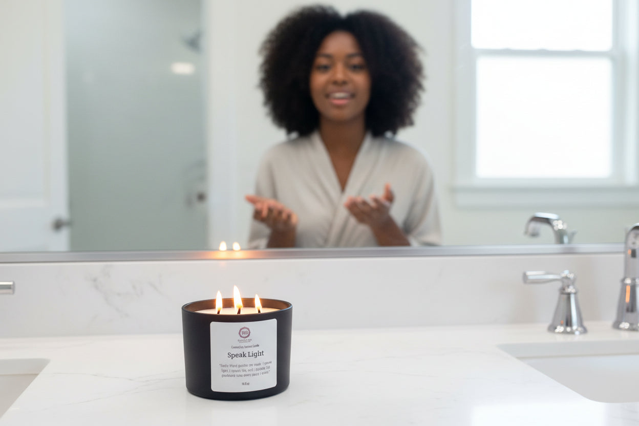 Aromatherapy is more than pleasant scents. It’s the intentional use of natural aromas to support emotional balance, physical well‑being, and spiritual grounding. Speak Light invites us to slow down, breathe deeply, and reconnect with ourselves. When its flame begins to glow, the air shifts. Peppermint awakens the mind with its cool, bright clarity, while eucalyptus drapes the room in a calm that feel like a fresh start. Let this fragrance be your invitation to clarity, calm, and elevation, one breath, one flame, one affirmation at a time.